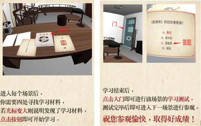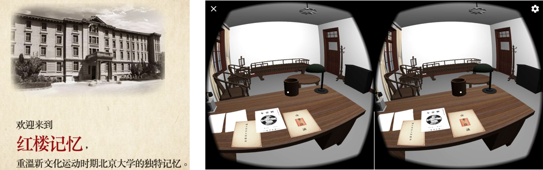 在形式方面,《VR红楼记忆》包含了VR体验、寻物学习、文本阅读、图片浏览、倾听朗读、影片观赏、答题等各种形式,令参观者在丰富的乐趣中重温红楼记忆,传承北大精神。