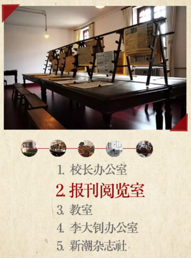 《VR红楼记忆》重现了北大红楼的五处重要场景——蔡元培校长办公室、报刊阅览室、教室、李大钊办公室和《新潮》杂志社。参观者可以全身心融入场景之中,感受新文化运动时期的北大文化样貌,了解北大历史上知名人物及其思想,并对北大精神、北大对于新文化运动、北大对于中华民族历史的重要地位有全方位的理解。