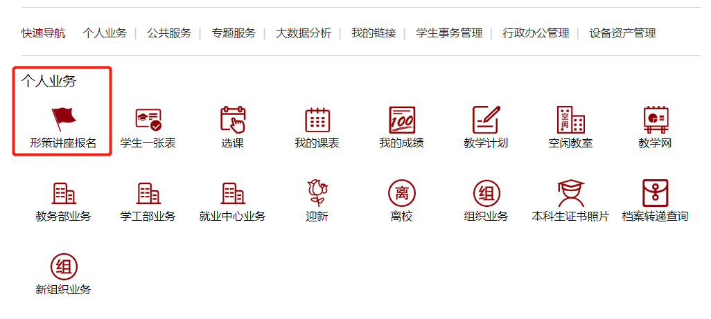 (2)在“个人业务”列表下点击“形策讲座报名”;