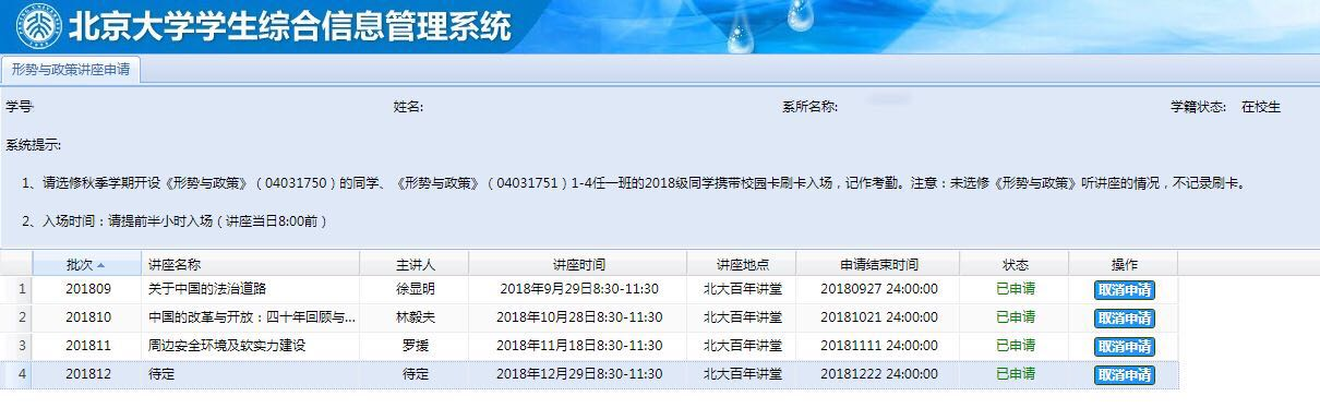 - 请选报讲座的学生于讲座开始前半小时携校园卡刷卡入场,记做考勤;未选修《形势与政策》(04031751)听讲座的情况,不记录考勤。