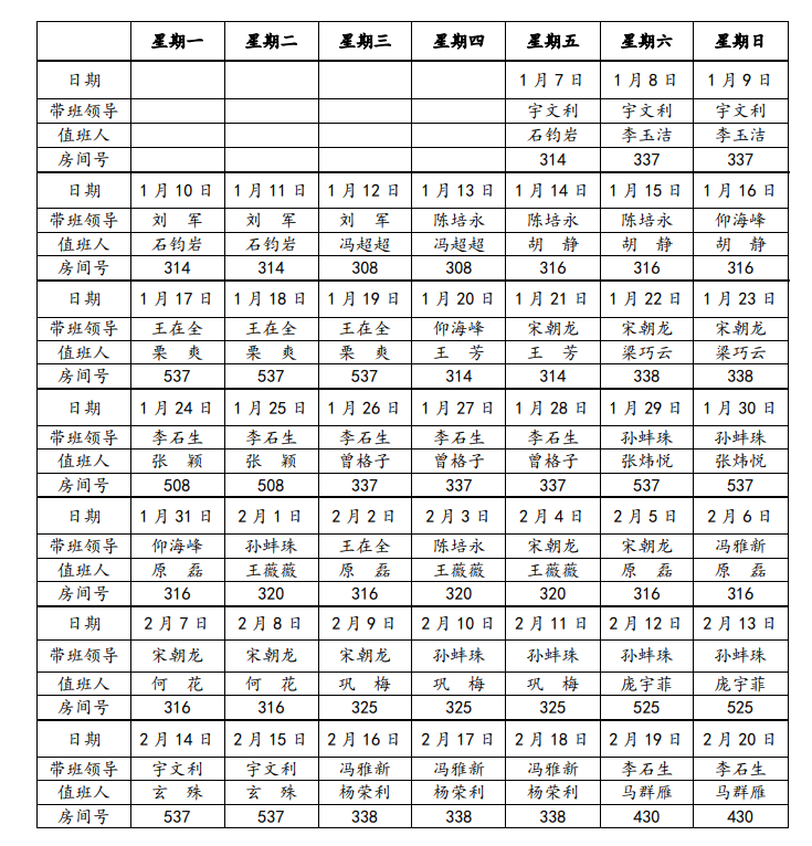 澳门电子pg游戏官网2022年寒假值班表
