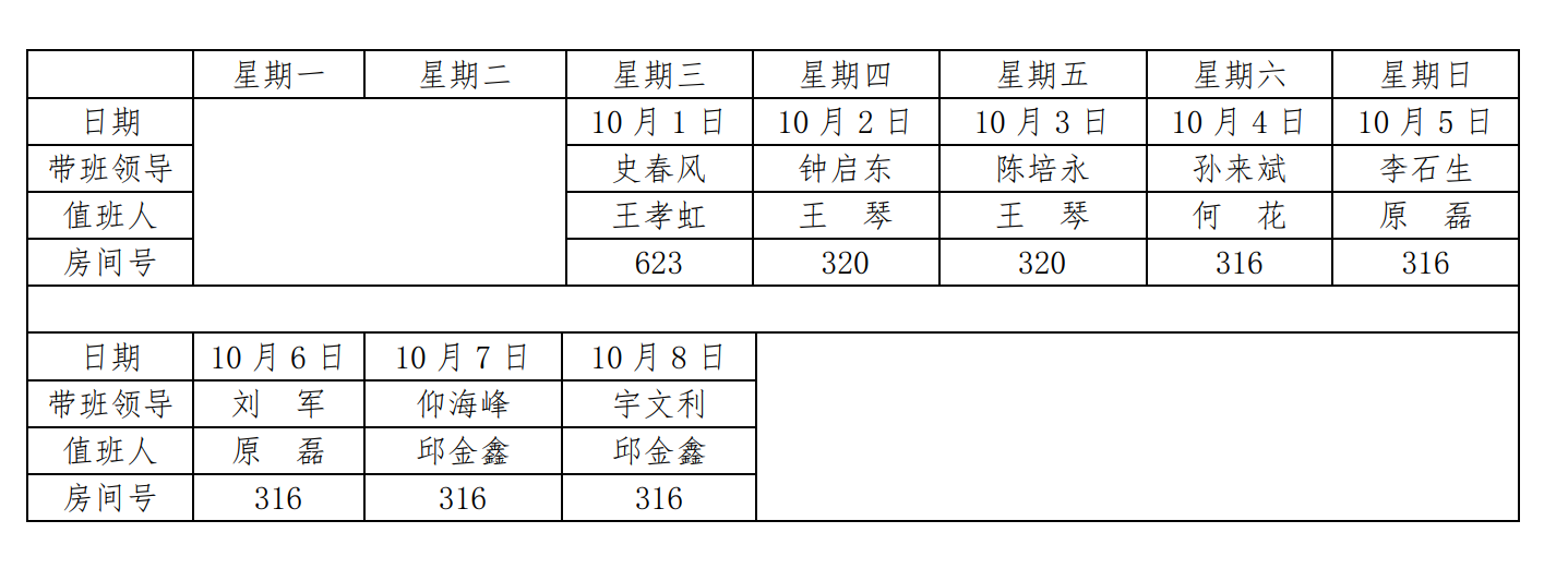 澳门电子pg游戏官网2025年国庆节、中秋节带班值班表