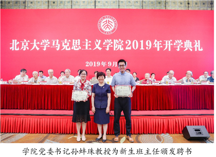 为更好地服务同学们成长成才,学院为本硕博新生班级精心配备了班主任老师。校党委常务副书记、学院院长于鸿君老师主动提出、亲自担任2019级博士生班主任,学院党委书记孙蚌珠老师担任2019级硕士生班主任。同时,聘请王成英、宋朝龙、封世蓝、张权等专任教师为新生各班级班主任。学院党委书记孙蚌珠老师为新生班主任代表颁发了聘书。