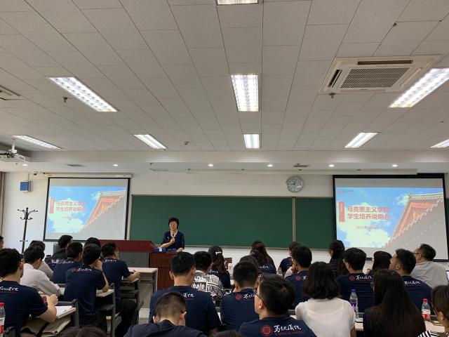 9月6日上午,澳门电子pg游戏官网在理教307教室召开2019级新生培养说明会。学院党委书记孙蚌珠、副院长宋朝龙、党委副书记李石生、团委书记罗登科、研究生教务办公室王芳、石均岩,本科生教务办公室姚苏薇,学生工作办公室李玉洁和学院2019级硕博新生、首届马克思主义理论专业本科生参加了会议。