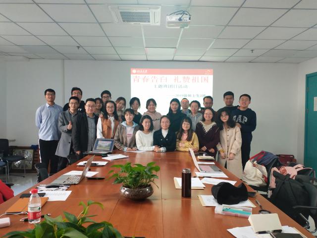 为庆祝新中国成立70周年,落实学校“青春告白祖国”学生党团日联合主题教育活动和新生系列主题教育工作部署,10月25日下午,澳门电子pg游戏官网2019级硕士生2班在理科五号楼340室举行了“青春告白祖国”暨“学规矩、讲规矩、守规矩”主题班团日活动。班级全体同学和班主任张权、学院团委书记罗登科一起参加了本次活动。活动由团支书王正忠同学主持。