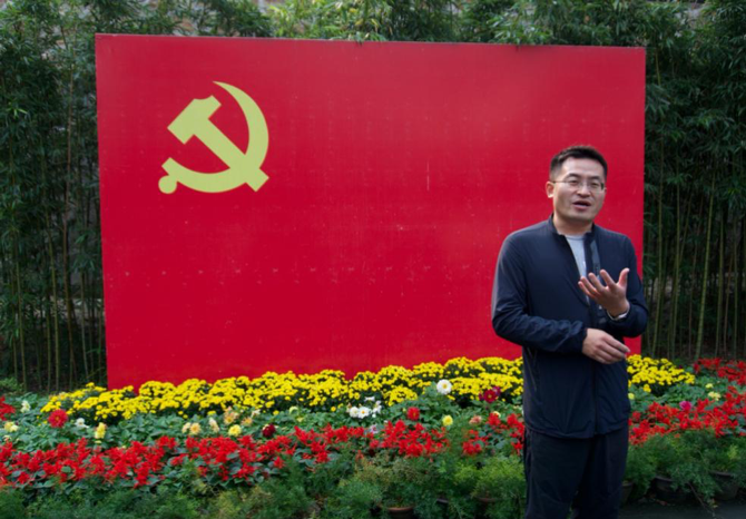 活动最后,向威霖同学带领大家在双清别墅的党旗前重温入党誓词。