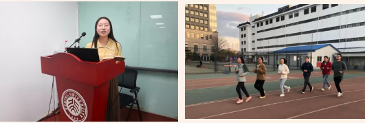 体育小组负责人张敏兰同学向大家汇报了体育小组举办的“瑜伽式健身”、“趣味变速跑”、“双人跳”、“跳高绳”等活动。她介绍到,刘香檀同学作为热身指导,为体育小组活动作出了富有意义的贡献,博士1班班长向威霖同学积极参加体育小组活动,助力了活动的顺利进行。该活动为同学们强身健体、发展体育素质提供了良好的场地与契机,使大家以更高的积极性融入党团班建设之中,以更加饱满的精神状态面对接下来的学习和生活。