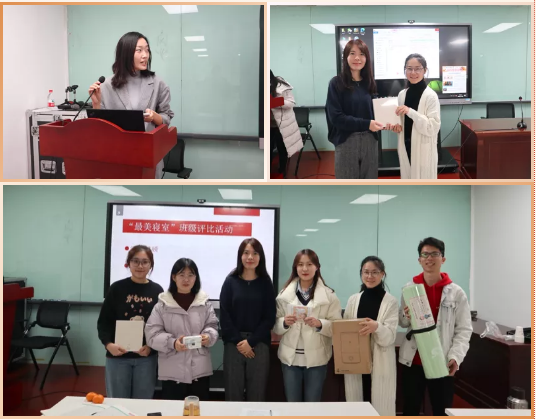 “最美寝室”班级评比活动负责人王娅力同学向大家介绍了本次评比的基本情况。她介绍到,本次活动鼓励同学们在周末进行寝室卫生大扫除,并将桌面设计以及卫生情况以图片形式展现出来,并通过班群在线投票的方式评选出优秀参赛作品。王娅力同学向大家公布了获奖同学名单,并采取个性化定制的方式准备了活动奖品。之后,李旸老师为“最美寝室”班级评比活动获奖同学进行颁奖。