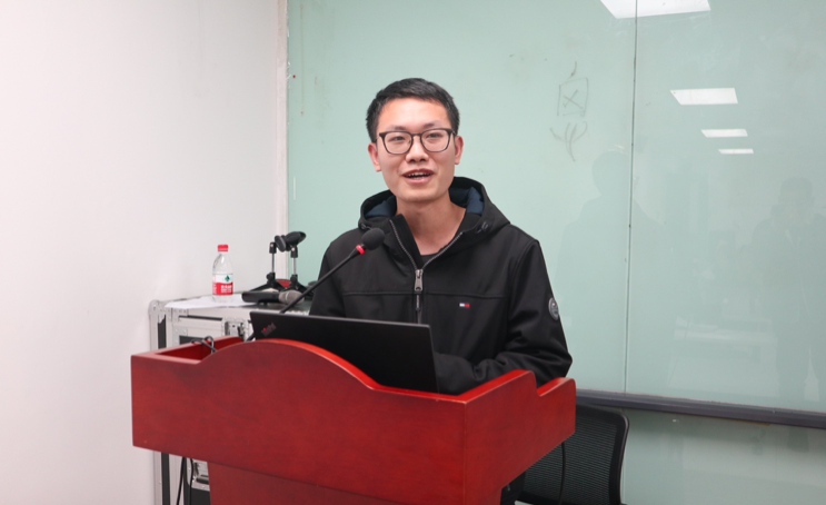 20级博士生1班班长向威霖同学进行发言。向威霖同学对本次活动的精彩内容与丰富形式作出好评,并提出了对于两班同学深度融合、互促共进、积极参加研究生会活动的希望。