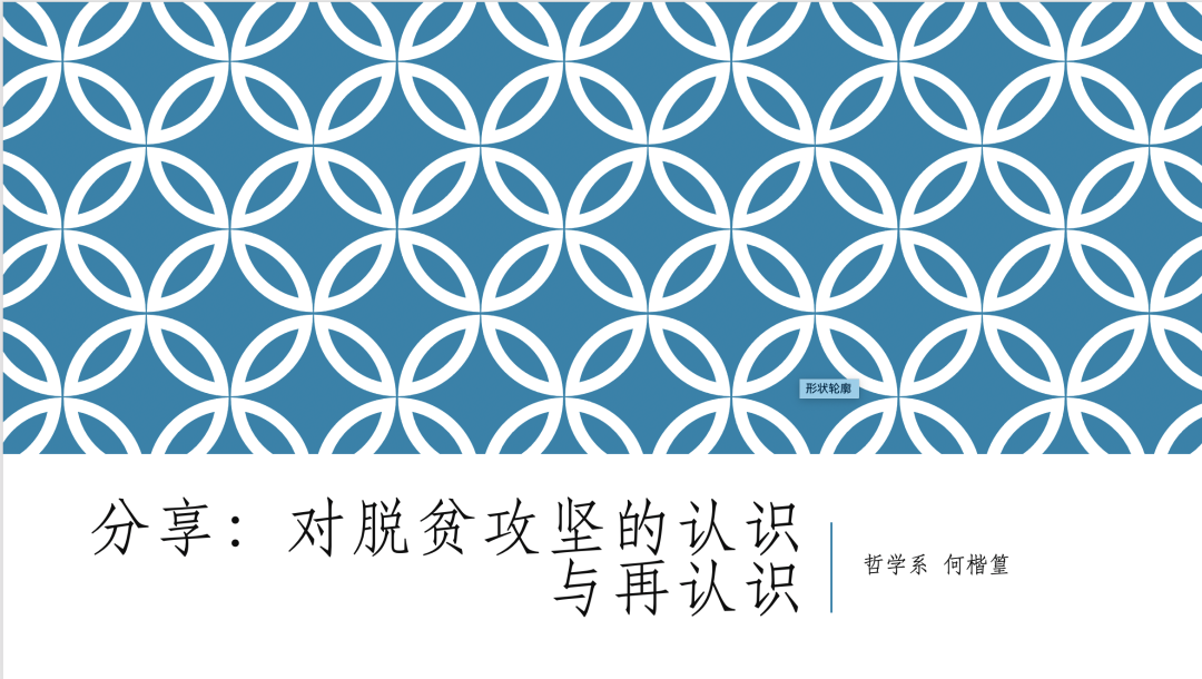 哲学系的何楷篁同学向大家分享了自身对于脱贫攻坚的认识和再认识,他从理想与反理想化之间的矛盾、执行者与评论者共情程度的落差、信息接受偏好这三个角度深入思考扶贫问题,不断反思现实、厘清困惑。