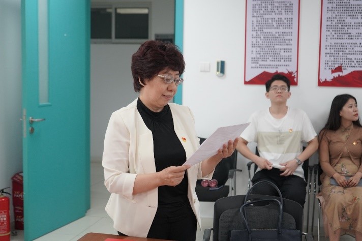 在老同志们发言结束后,教工党支部书记代表史春风畅谈自己参会感想。她表示,今天的仪式是一次生动的党史教育和党员信仰教育,在短短发言中,各位老同志所流露出的坚定信仰、无悔选择和对党的真情,深深地感染了聆听者。学生党支部书记代表尹航表示,作为年轻一代的学生党员,一定向前辈党员学习,不负重托。