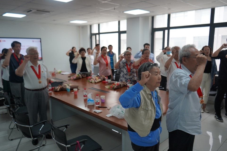 最后,在退休党员代表徐雅民的带领下,与会人员重温了入党誓词。座谈会在齐唱《没有共产党就没有新中国》的歌声中落下帷幕。