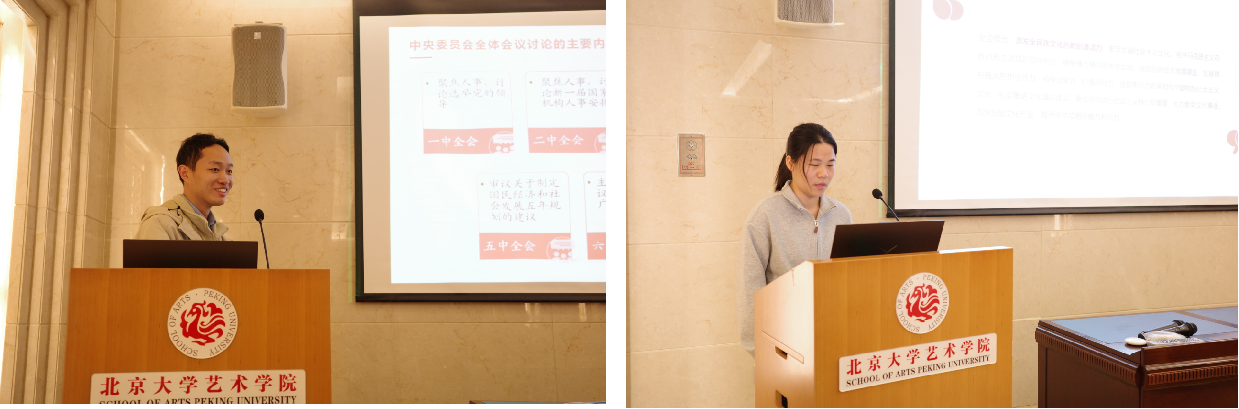 接着,澳门电子pg游戏官网2022级博士生郝晨宇生动领学党的二十届四中全会精神,从党的建设总要求到文化创新部署,从新质生产力到青年使命,为接下来的艺术实践提供引领。艺术学院2023级博士生胡月月聚焦“激发全民族文化创新创造活力”这一主题,分享了艺术学院在计算艺术与颗粒艺术领域的创新理念与实践成果。这一环节形成了从思想到实践的有序衔接,彰显了跨学科交流的深度与价值。