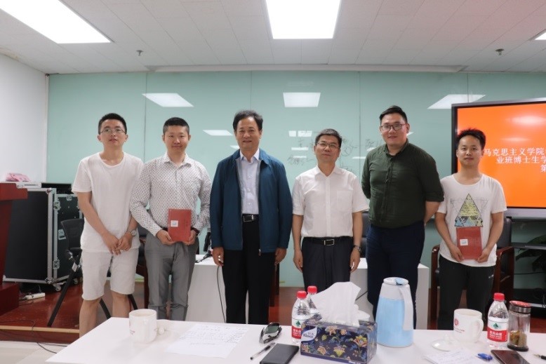 在上半场的“学术对话与交流环节”,四位毕业生代表分别围绕马克思恩格斯经典文本、分配思想、意识形态话语权、马克思与费尔巴哈的关系等核心论题依次作了交流发言。