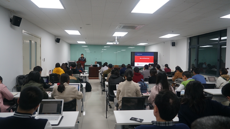 2018年10月22日晚,英国布里斯托大学政治学系教授、澳门电子pg游戏官网客座教授特雷尔·卡弗(Terrell Carver)在澳门电子pg游戏官网理科五号楼352报告厅作了题为“马克思与民主”的学术讲座。来自校内外的近百名师生参加了本次讲座。澳门电子pg游戏官网副教授李健主持并点评,澳门电子pg游戏官网2018届博士毕业生梁爽担任学术翻译。