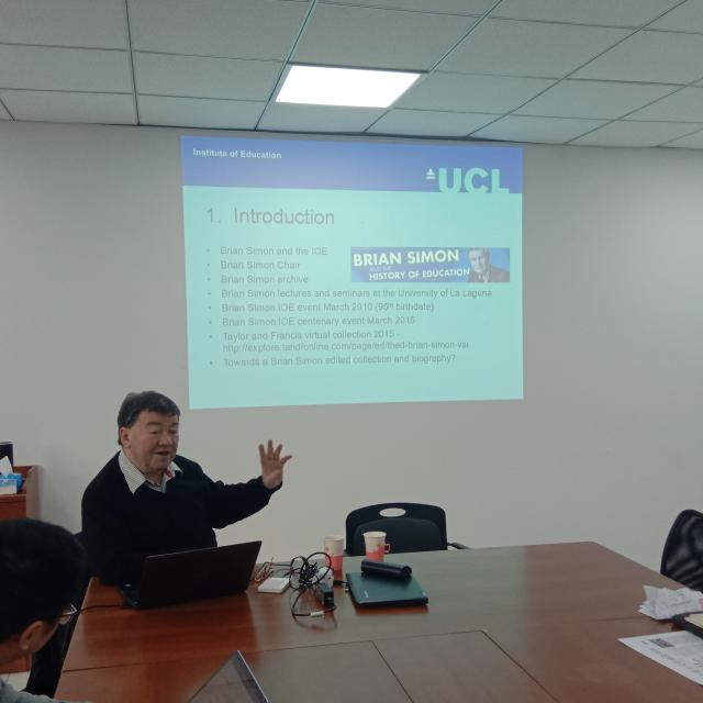在讲座中,Gary McCulloch教授选取了Brain·Simon自传的部分章节和档案馆的相关资料,介绍了英国著名教育史学者Brain·Simon的家庭背景及成长经历,着重说明了他的军队经历和政治活动等生平事迹及其与他所做出的学术成果之间的关系,他通过对Brain·Simon与英国共产党以及马克思主义与教育的相关内容,分析了关于20世纪英国教育、历史、政治、文化、经济和意识形态之间的关系,使同学们能够透过Brain·Simon的生平事迹了解其思想,并进一步理解20世纪英国的教育史。