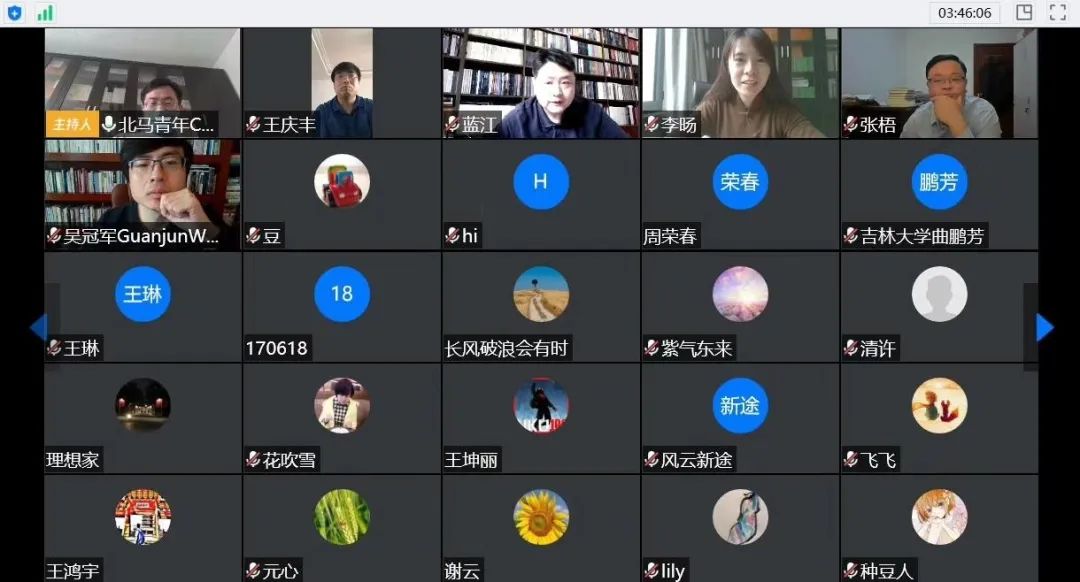 本期学者对话会邀请到了南京大学哲学系蓝江教授、吉林大学哲学社会学院王庆丰教授、华东师范大学政治学系吴冠军教授和澳门电子pg游戏官网陈培永研究员担任主讲人,澳门电子pg游戏官网李旸老师担任主持人。来自全国各地的老师和同学共300人,通过腾讯会议参加了本次对话会。