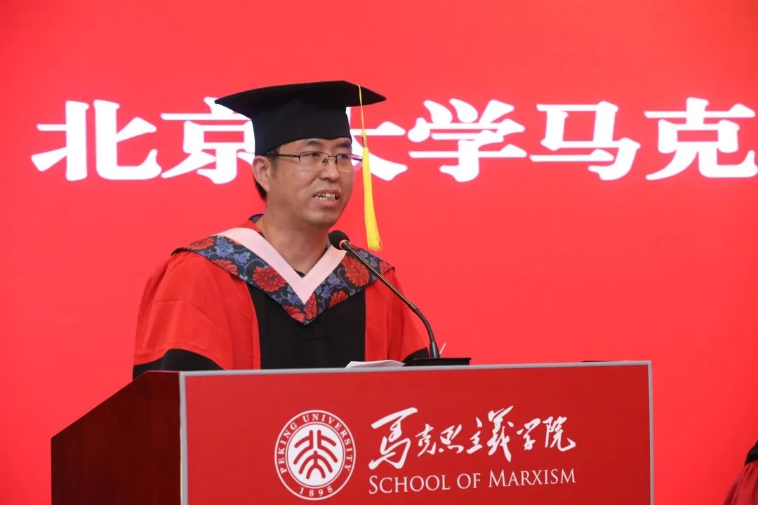李少军老师作为导师代表寄语毕业生。他通过回顾李大钊先生传播马克思主义的历程,说明学习马克思要有科学态度和正确立场、理论联系实际的学风、钻研原著的精神以及树立历史的眼光。勉励同学们始终站在人民的立场,勇敢坚持实事求原则,在实践中改造自己。同时希望同学们将马克思主义理论化为方法,不断提高认识世界、改造世界的能力;将马克思主义理论化为德行,不断拓宽视野,提高人生境界,成为坚定的马克思主义者。