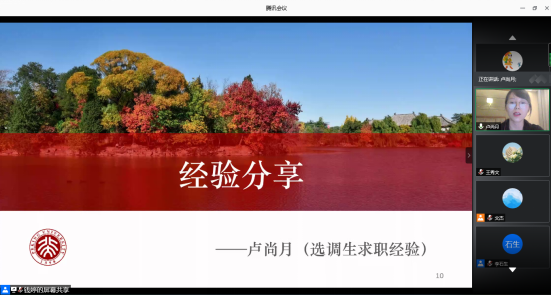 2016级博士卢尚月校友分享了报考黑龙江省选调生经验以及相关政策条件,之所以在毕业后选择赴基层公共部门,缘起于她博二参加的学校“鸿雁”实践计划。卢尚月表示家乡东北缺少人才,成为选调生可以在服务人民的第一线,更好地学以致用贡献自己的青春力量。