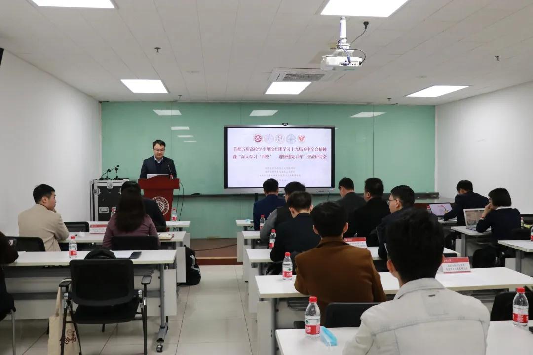接着,首都五所高校学生理论社团的代表依次进行“学习十九届五中全会精神”主题宣讲。