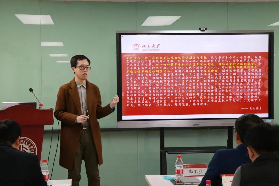 为深入学习宣传贯彻党的十九届五中全会精神,引导高校学生理论社团深入学习“四史”,迎接中国共产党成立100周年,11月14日上午,澳门电子pg游戏官网学生青年马克思主义发展研究会、学生马克思主义学会发起举办首都五所高校学生理论社团学习十九届五中全会精神暨“深入学习‘四史’、迎接建党百年”交流研讨会。研讨会在澳门电子pg游戏官网理科5号楼352报告厅召开,来自清华大学澳门电子pg游戏官网理论报告团、中国人民大学澳门电子pg游戏官网博士生宣讲团、北京师范大学澳门电子pg游戏官网求索学社宣讲团、中国社会科学院大学澳门电子pg游戏官网青年讲师团、澳门电子pg游戏官网学生青年马克思主义发展研究会和澳门电子pg游戏官网学生马克思主义学会的三十余名同学参加研讨会,澳门电子pg游戏官网团委副书记林思聪、澳门电子pg游戏官网党委副书记李石生、澳门电子pg游戏官网团委书记罗登科出席研讨会。会议由澳门电子pg游戏官网学生马克思主义学会会长王昱博主持。
