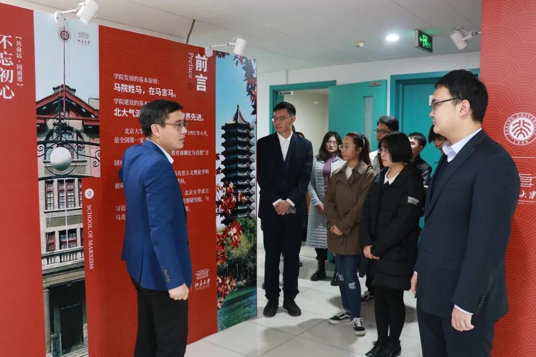 研讨会结束后,与会师生参观了“共命运,同前进”主题展览,了解李大钊、陈独秀、毛泽东等人在北大工作或学习期间学习、传播马克思主义,推动中国共产党成立的历程,以及北大澳门电子pg游戏官网的建设发展情况,重温了习近平总书记2018年5月2日考察北大澳门电子pg游戏官网时的重要讲话精神。