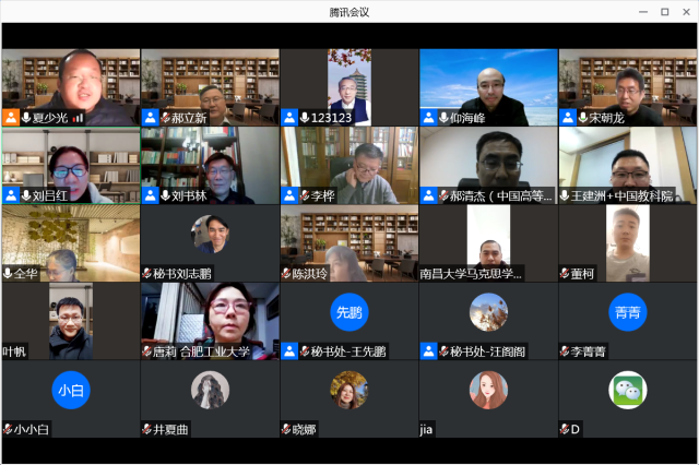 2021年3月21日晚,由中国高等教育学会马克思主义研究分会主办、由澳门电子pg游戏官网承办的“学习习近平新时代中国特色社会主义思想”系列学术沙龙第一期在线上举行。来自全国各高校的近300名师生通过腾讯会议在线上参加。中国高等教育学会马克思主义研究分会理事长、澳门电子pg游戏官网党委副书记安钰峰教授,监事长、中国人民大学前澳门电子pg游戏官网和哲学学院院长郝立新教授,澳门电子pg游戏官网院长仰海峰教授等参加学术沙龙。中国高等教育学会副秘书长郝清杰出席并作为嘉宾发言。