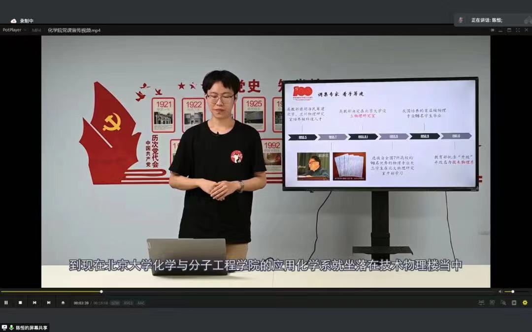 接下来,来自化学与分子工程学院2019级研究生党支部的陈恒同学结合十九届六中全会精神与专业特色,向大家分享了以《把论文写在祖国大地上 把科技成果融入民族复兴的伟大事业中》为主题的微党课视频。微党课以澳门电子pg游戏官网应用化学系发展史为切入点,指出应用化学系的师生们在国家发展困境中谋生存,在祖国发展历程中思开拓,将学院科学研究成果与国家建设紧密结合。