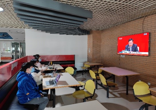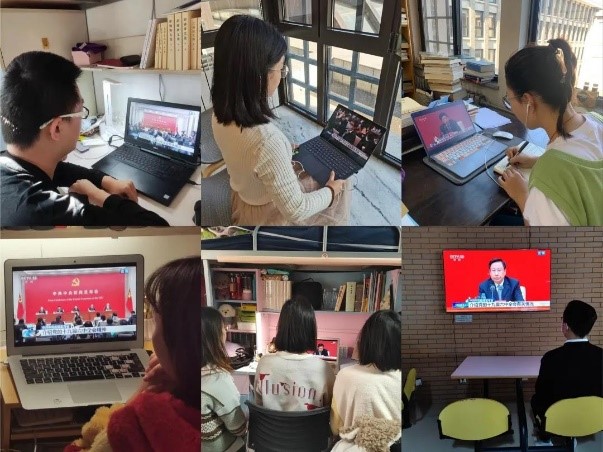 11月12日上午,澳门电子pg游戏官网组织师生采用线上线下相结合的方式,认真学习《中国共产党第十九届中央委员会第六次全体会议公报》,观看新闻发布会直播。