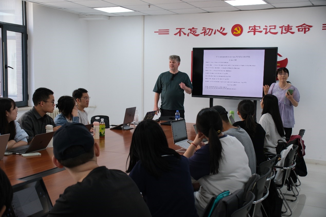 9月13日下午,保罗·布莱克里奇教授以“历史唯物主义”(Historical Materialism)为题,讲授第一次课程。首先,教授以英国资本主义的起源为例,剖析了历史唯物主义的基本概念。他指出,英国的历史教科书通常将本国资本主义的发展归功于少部分聪明人。但实际上,英国资本主义兴起的社会条件是市场生产与自由劳动力的形成,资产阶级革命则为其进一步扫清障碍。结合这段历史,教授介绍了生产方式、生产力、生产关系、经济基础、上层建筑等范畴,讲解了阶级斗争和革命的理论以及无产阶级在资本主义社会的地位与使命。他强调无产阶级只有联合起来,通过斗争实现社会生产资料的联合所有,才能获得真正的自由。其次,教授回应了后现代主义思潮对马克思主义的批评。他认为,后现代主义在本质上将资本主义看作“历史的终结”,而马克思主义否认这一论断。历史唯物主义是马克思寻求历史真相、寻找人类解放道路的方法论。最后,教授还围绕马克思主义对人性的观点、辩证唯物主义与历史唯物主义的关系、不同社会形态的阶级斗争等问题与师生展开深入交流。