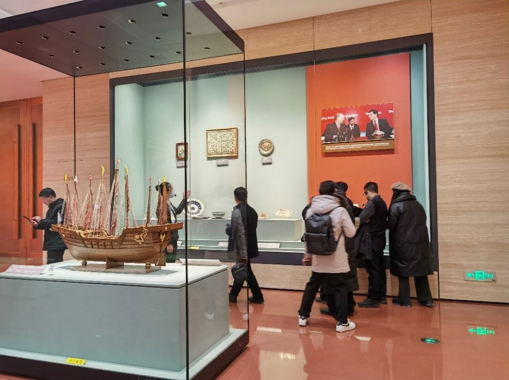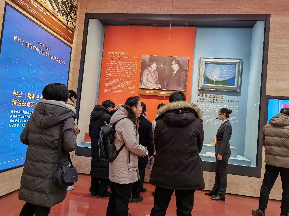 为深入学习贯彻党的二十大精神,加强爱国主义教育,感悟新中国辉煌灿烂的大国外交成就,2023年12月16日,澳门电子pg游戏官网马克思主义中国化支部、思想政治教育支部,赴中央礼品文物管理中心参观“友好往来·命运与共——党和国家领导人外交活动礼品展”,联合开展主题党日活动。