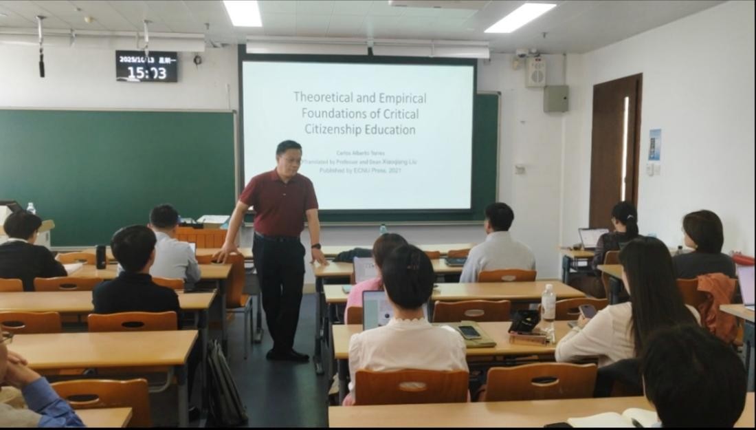 讲座伊始,托雷斯教授首先介绍了他新出版的中译本著作《全球公民教育:批判性的理论与实践基础》。该书作为全球公民教育领域的开山之作,深入探讨了全球公民教育在当今时代的必要性与现实情况,剖析了新自由主义共识、世界体系中的竞争与合作等核心议题,并构建了从多元文化主义到全球和平,再到将全球公民教育视为全球社会运动的宏大理论框架。全球公民教育也是本场讲座的关键词之一,简要引入后,托雷斯教授深入主题展开探讨。