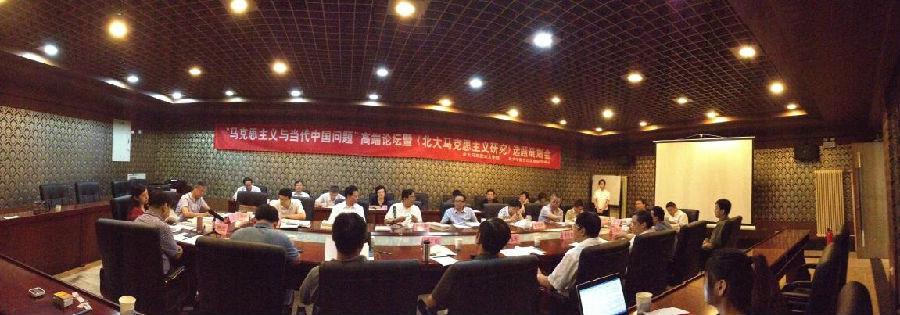 2014年8月23日,澳门电子pg游戏官网召开“马克思主义与当代中国问题高端论坛暨《北大马克思主义研究》选题策划会”。来自中央文献研究室、 中央党史研究室、中央党校、中国社科院、澳门电子pg游戏官网、中国人民大学、北京师范大学等单位近30位专家学者与会。
