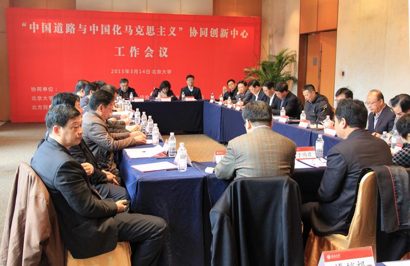 2015年3月14日,“中国道路与中国化马克思主义”协同创新中心工作会议在澳门电子pg游戏官网博雅国际会议中心召开。教育部副部长李卫红、《求是》杂志社社长李捷、澳门电子pg游戏官网常务副校长刘伟、吴志攀、澳门电子pg游戏官网党委副书记于鸿君等领导出席会议。会议由澳门电子pg游戏官网执行院长孙熙国教授主持。