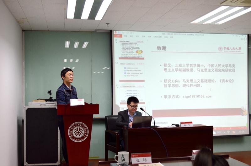 郗戈老师主讲的是“《资本论》中经济学与哲学的关系问题的思想史考察”。他提出,对于《资本论》,不能简单地从“经济学”或“哲学”的单一学科视角去理解。对于《资本论》的研究,既要克服过度“哲学化”、“思辨化”的倾向,也要避免过度“经济学化”、“实证化”的倾向。从西方思想史上的学科关系来看,经济学与哲学并非始终是现代学科规训中分化并置的形态,而是历史地呈现出未分化、分化与再整合的动态发展过程。在《资本论》中,经济学与哲学实现了内在结合,马克思的哲学深化为一种关于资本主义生产方式的政治经济学批判,而政治经济学批判同时也被提升为一种关于现代世界的存在方式、生成方式与超越方式的新型哲学世界观。《资本论》作为哲学的现实化、具体化,恰恰是传统哲学形态的终结,并开创出一种综合了经济学与哲学的“新哲学”形态。