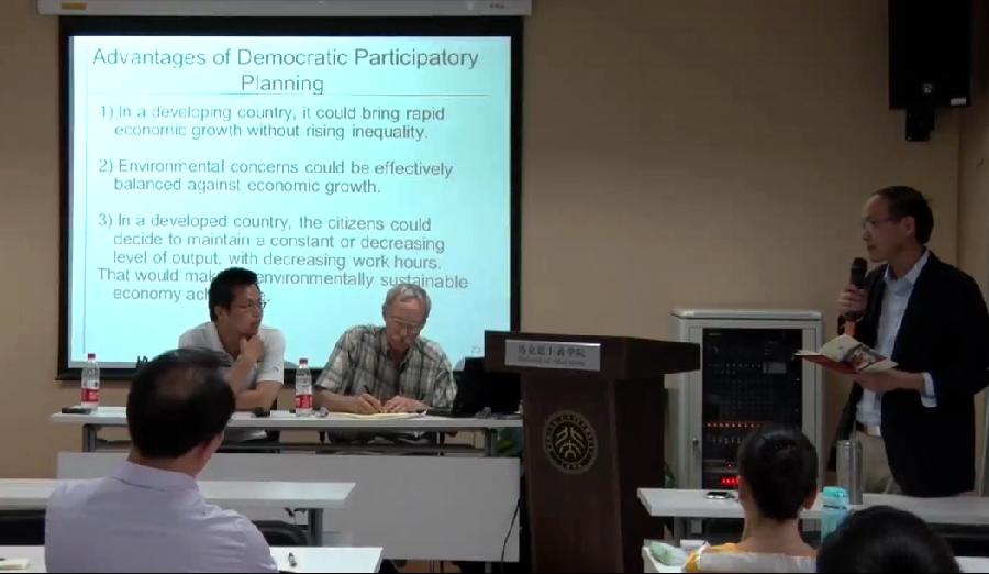 第三场特伦斯·麦克唐纳教授讲座的主题是“西方马克思主义与现代政治经济学”。麦克唐纳教授首先指出了西方马克思主义政治经济学的不同分支,不同的理论侧重点。他把马克思主义分为原教旨主义的和批判传统的马克思主义两大类,并分析了西方政治经济学派与马克思主义的渊源,以及这些经济学派对马克思主义经典政治经济学持批判态度的原因。他着重分析了皮埃罗•斯拉法经济学理论,以此作为观点的例证。他还提到金融环境、金融商业循环、投资机遇等问题,认为在资本主义金融体系中,经济危机和不稳定性会有所增加。