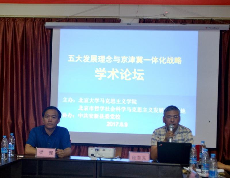 为了深刻理解我国设立雄安新区重大发展战略,澳门电子pg游戏官网、北京市哲学社会科学中国化马克思主义发展研究基地于2017年6月9日在雄安新区成功举办“北大澳门电子pg游戏官网访问学者论坛”,论坛的主题是“五大发展理念与京津冀一体化建设”。澳门电子pg游戏官网副院长程美东教授、院长助理王在全教授、河北省安新县党委党校常务副校长梁健出席会议并讲话。澳门电子pg游戏官网全体访学进修人员和兄弟院系部分访问学者共30多人参加了会议。