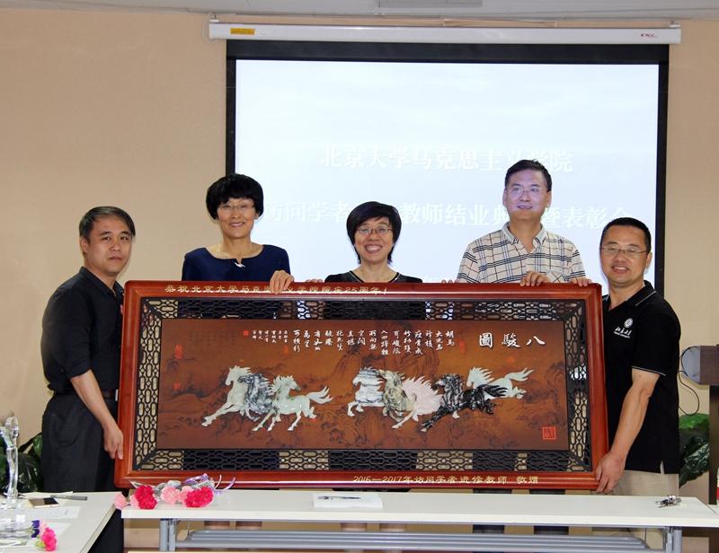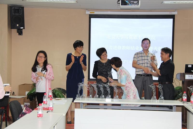 程美东副院长主持结业典礼。他简要回顾、总结了访学进修人员一年来学习、研究的情况。2016级北大马院30位访问学者和进修教师在一年内参加校内外、国内外学术研讨会400多场次,自办访学论坛、学术沙龙6场,组织社会实践、社会调查5次,编辑出版访问学者文库1部,获得各级科研课题立项26项,发表论文48篇,主编参编著作、教材8部,1人获得博士学位,1人博士后出站,2人攻读博士学位,获得各级各类奖励36人次(其中4人获得澳门电子pg游戏官网访问学者科研成果奖,6人获得北大马院优秀访问学者、优秀进修教师)。他说:一年来各位访学进修人员很活跃,很上进,充满活力,精神风貌好,大家十分刻苦,参加各种学术活动,自办论坛相互交流,主动听课,,成果突出,可喜可贺。大家和马院都建立了很深的真情实感,从言谈举止就能感受到这种情感是汩汩而出。这些成就的取得,是大家努力的结果,但也与班委会发挥了很好的带头示范作用有着密切关联。今后马院将会不断创造条件、创造办法,比如开办访学论坛,邀请各届访学进修人员参加,使之办成一个会议品牌,使得访问学者在推动马克思主义理论学科建设方面起到更大的作用。