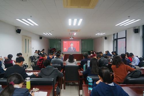 在党的十九大召开前,澳门电子pg游戏官网党委对各党支部、师生党员和入党积极分子在党的十九大召开期间及时收听收看大会盛况和深入学习领会大会精神进行了动员部署。在观看直播过程中,在场师生仔细聆听、认真记录,对习近平同志所作的报告不时报以热烈的掌声。