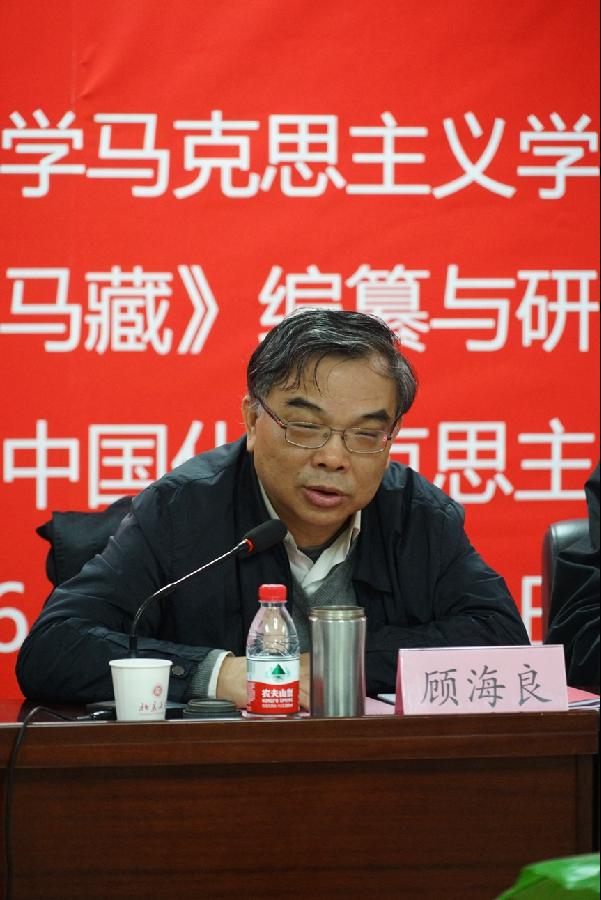 教育部高校思想政治理论课教学指导委员会主任、澳门电子pg游戏官网中国道路与中国化马克思主义协同创新中心主任、澳门电子pg游戏官网《马藏》编纂与研究中心主任顾海良教授在讲话中说,《马藏》编纂工程自2015年3月启动之后,产生的影响非常大,大家都认为这项学术文化工程应该做,而且现在是做的时机,由北大来做是最合适的;澳门电子pg游戏官网图书馆馆藏资源丰富,资料非常珍贵,有很多“富矿”没有开采;学校领导、相关专家学者、国内各大图书馆、出版社对这项工程都给予了非常慷慨的支持。自《马藏》工程启动至今,主要做了三件事,一是全力以赴搜集1917年之前马克思主义在中国传播的文献;二是参照《马克思恩格斯全集》历史考证版第二版(MEGA2)的编辑原则和体例,借鉴其它文献编纂的经验,制定《马藏》的编辑原则和体例等学术规范;三是《马藏》编纂与研究中心人员编注了《社会主义史大纲》、《社会主义神髓》、《共产党宣言序言》和《共产党宣言》四个样稿,供专家审读。按预期进度,将在2017年十月革命100周年之际出版1871年至1917年马克思主义传入中国的文献若干卷次。