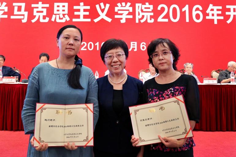 聘任班主任也是近年来开学典礼的重要环节。学院党委书记孙蚌珠教授代表学院向2016级博士、硕士研究生班主任史春风、赵顺二位老师颁发了聘书,并发表了简短讲话。