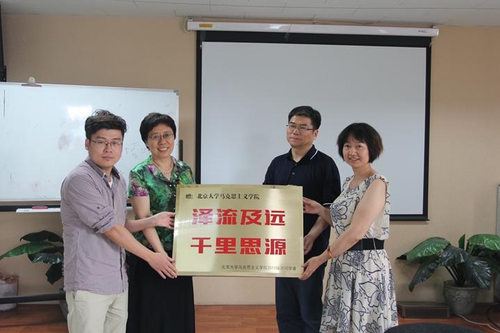 最后,北大马院为各位访问学者颁发了毕业纪念。“大鹏展翅”的原创设计寄托了马院对大家“鹏程万里”的希冀。“泽流及远,千里思源”的铜匾凝聚了2015级访问学者们对北大马院的感激和祝福。