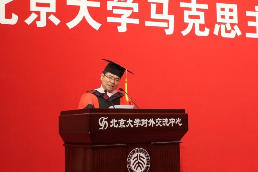 孙代尧教授在以《祝贺》为主题的致辞中说,自从12世纪末欧洲的大学首创学位制度并举行学位授予仪式以来,毕业典礼就成为一种非常重要的仪式,成为一种特殊的文化景观。通过毕业仪式,毕业生们检验了自己的价值,找到了精神存在的意义,并化为一生的珍藏和回味。他代表澳门电子pg游戏官网学位评定委员会马克思主义理论分会,向学院获得硕士、博士学位的同学表示衷心的祝贺。他说,学位具有身份象征的意义,所谓“学以居位曰士”,“以才智用者谓之士”,“通古今,谓之士。”各位同学获得北大的硕士或博士,成为有学识和智慧的人,成为有识之“士”,可喜可贺。祝同学们带着一份北大人的社会理想和家国情怀,选择好自己的位置和人生,做最好的自己。