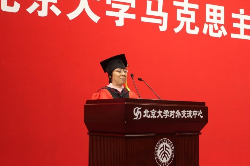 毕业生代表李兰英同学代表全体毕业生做了发言。她表示,是北大马院使得自己真正认识到了什么是马克思主义,才真正感受到了一种思想和信仰融合的力量,这对于自己的一生都是无价之宝。