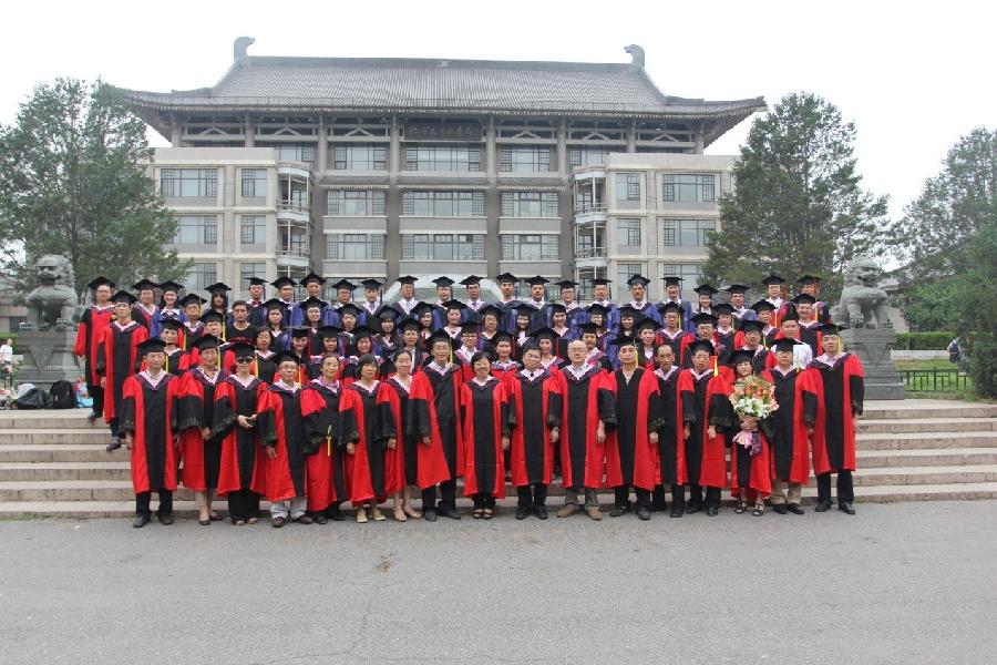 毕业生代表向教师代表黄小寒教授、李毅红教授、刘志光教授、白雪秋教授、王文章教授、李少军教授敬献了鲜花。毕业生们还分别和自己的导师在会议主席台合影留念。