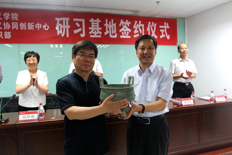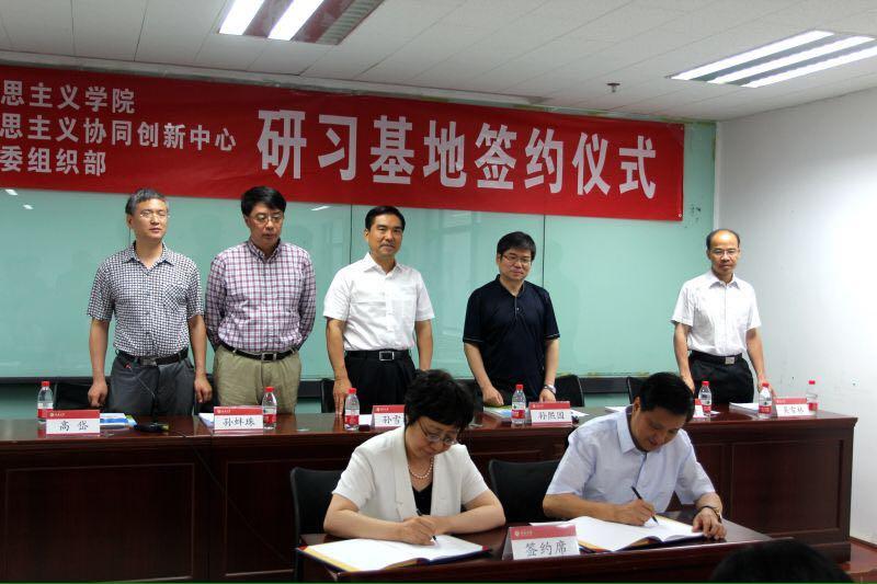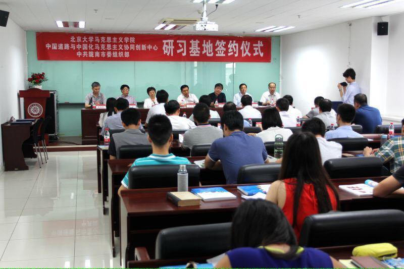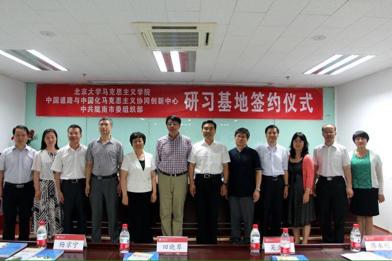 2015年7月1日下午,陇南市委组织部与澳门电子pg游戏官网、中国道路与中国化马克思主义协同创新中心学生研习基地共建协议签约仪式在京举行。澳门电子pg游戏官网执行院长孙熙国、陇南市委书记孙雪涛在签约仪式上分别致辞,陇南市委常委、组织部长崔景瑜与马克思主义学院党委书记、副院长孙蚌珠分别代表双方签订协议。陇南市委常委、副市长吴雪林,澳门电子pg游戏官网研究生院副院长高岱、研究生院培养办主任贾爱英,澳门电子pg游戏官网马克思主义学院副院长程美东教授,澳门电子pg游戏官网马克思主义学院副书记冯雅新老师,澳门电子pg游戏官网学生就业指导服务中心主任陈永利以及陇南市委办公室、市委人才办等单位负责人出席了签约仪式。