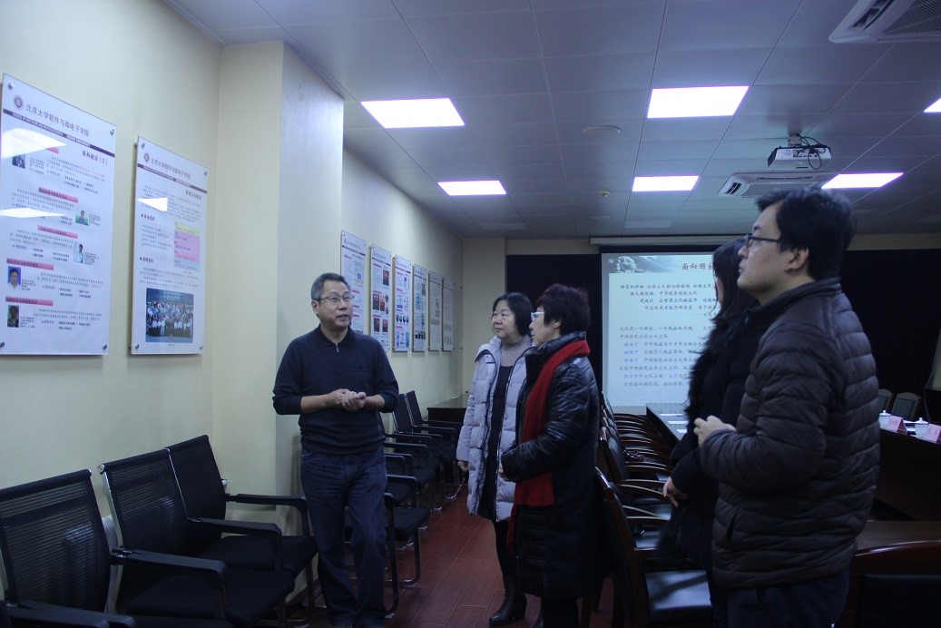 孙蚌珠一行首先参观了学院介绍展板,张兴从学院建院历史、学科建设、师资队伍、学生发展和就业情况等方面系统介绍了学院“专业教育学分制、素质教育学苑式、产学研用一体化”的办学模式和“面向产业、面向领域,培养高层次、实用型、复合交叉型、国际化”的培养目标。