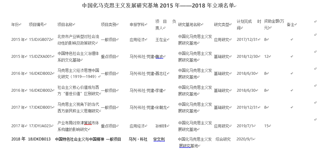 中国化马克思主义发展研究基地2015年——2018年立项名单