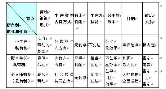 从表中可以看出,三种所有制形式的相互关系及其各自的优势和劣势。