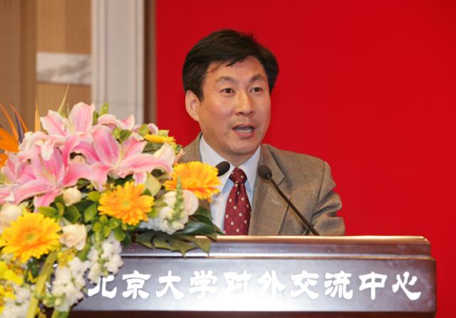 杨河副书记在致辞中谈到:一所高等学府在社会上的地位,一所大学在人们心目中的形象,不仅仅取决于她日常的教学、科研工作和她的校园建设工作,在更大程度上是取决于她的毕业生、她的校友在社会历史进程中做出的贡献。北大百年声誉和成就,正是因为千千万万的校友传承发扬着北大精神,不仅在自己的工作岗位上努力拚搏努力,更怀着对母校的深情厚意,以实际行动支持母校的发展。